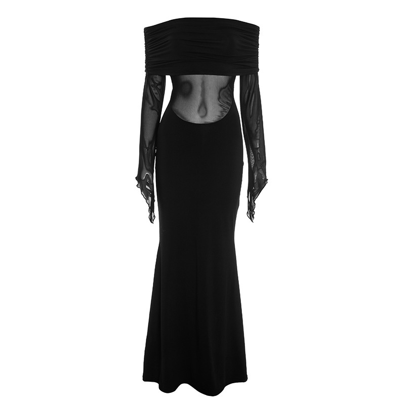 Vestido largo entallado con paneles de tul