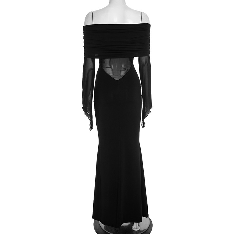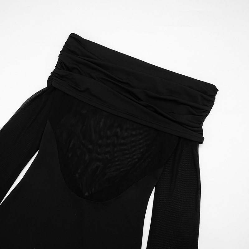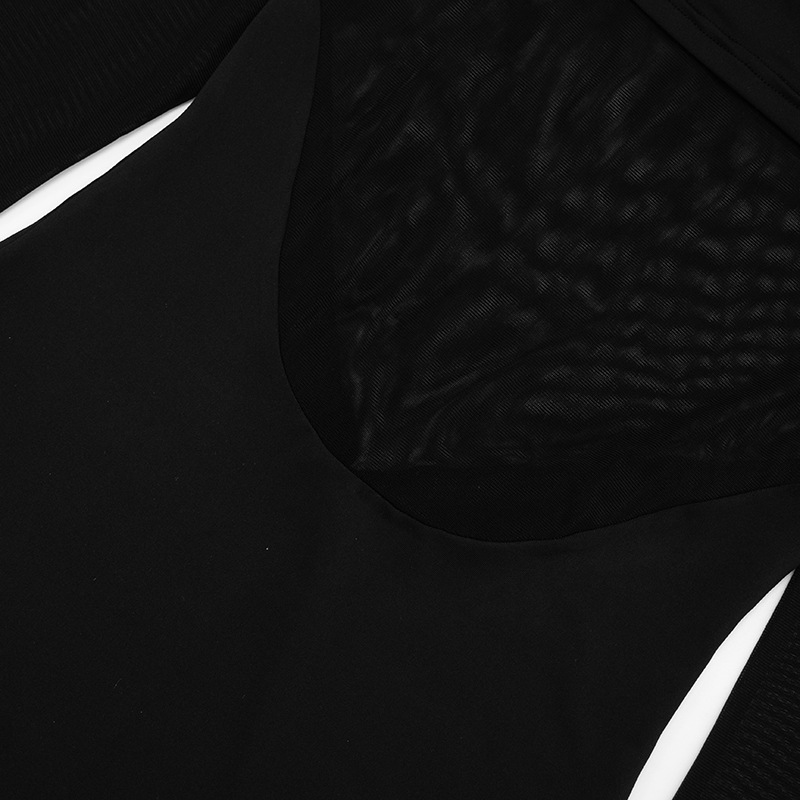 Sus paneles de tul aportan un toque de ligereza y contraste, mientras que su corte ajustado acentúa las líneas con modernidad. Las mangas largas equilibran perfectamente el conjunto y refuerzan su sofisticado encanto. Ideal para una salida, una cena o un evento en el que quieras lucir una presencia chic y segura, este vestido combina carácter, elegancia y feminidad.