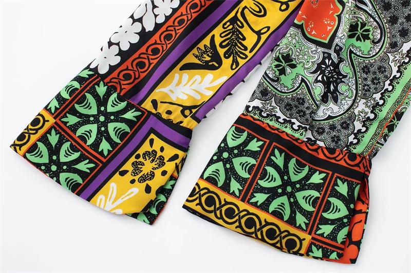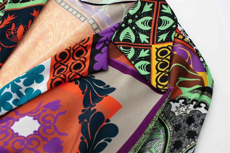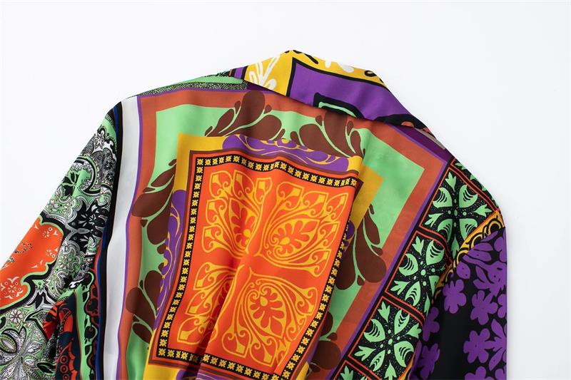 Elegante, ligero y fácil de llevar, este conjunto estampado combina una camisa holgada de manga larga y una falda a juego para una silueta femenina y refinada.
